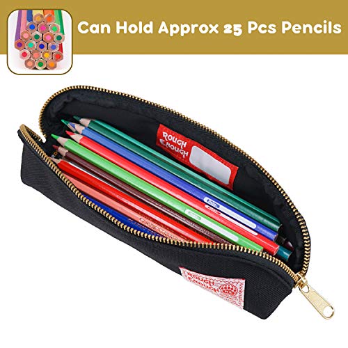 Rough Enough, astuccio piccolo e lungo, per bambini e ragazze, portapenne, organizer per articoli per la scuola d'arte, colore nero