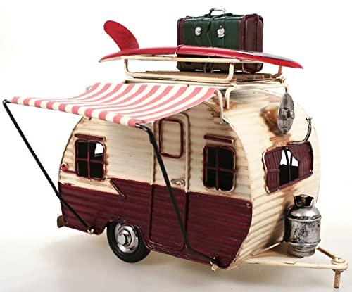 Roulotte in metallo rosso 23 cm con telaio e salvadanaio shabby camper vintage auto d'epoca caravan nostalgia campeggio viaggio buono