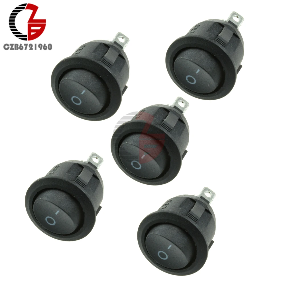 5Pcs Mini 3 Pin Round Black SPDT ON-OFF Rocker Switch Snap-in Push Button Switch Toggle Switch
