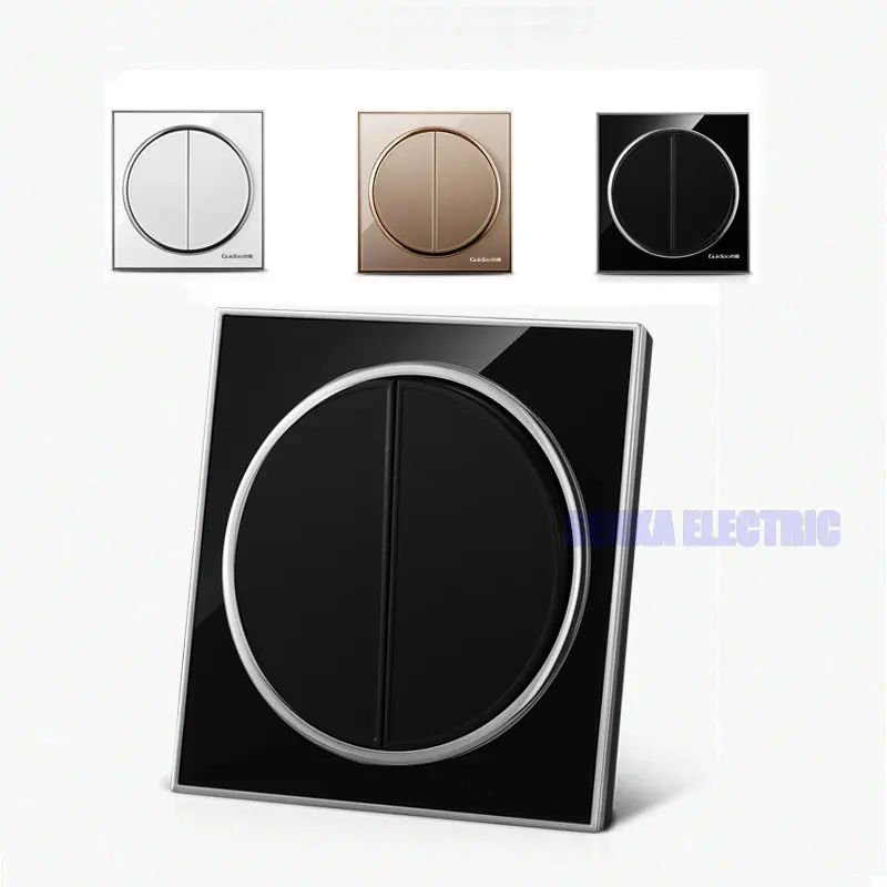 New Round Design 2 Gang 1 Way Panel Switch Glass Face White/Black/Gold Wall Switch