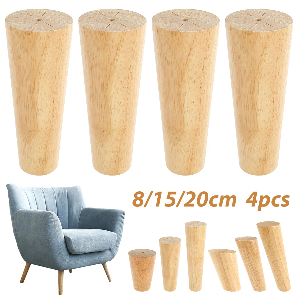 4Pcs Round Furniture Legs Height 8/15/20 cm Solid Wood Furniture Replacement Legs Furniture Tapered Table Sofa Stool Wooden Feet