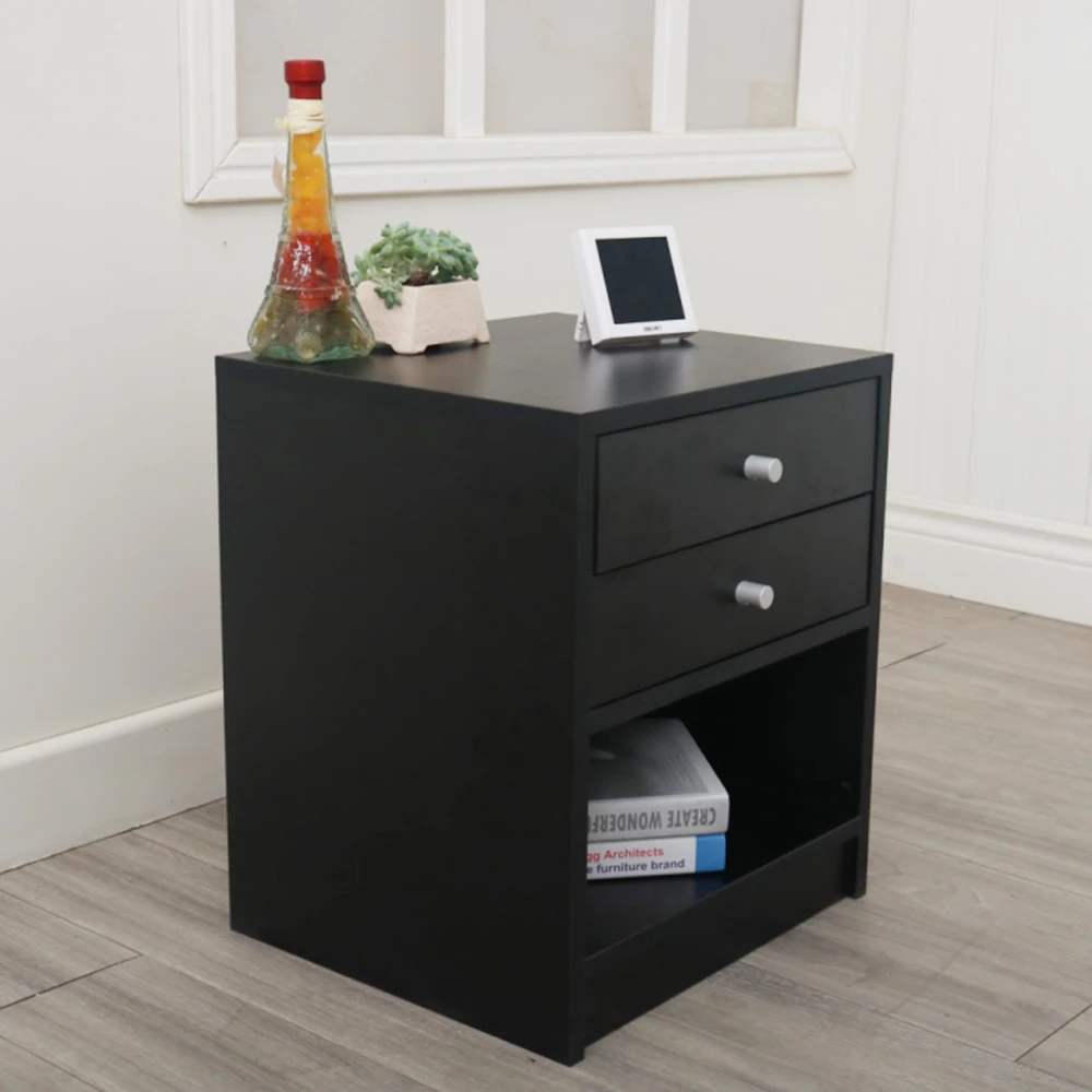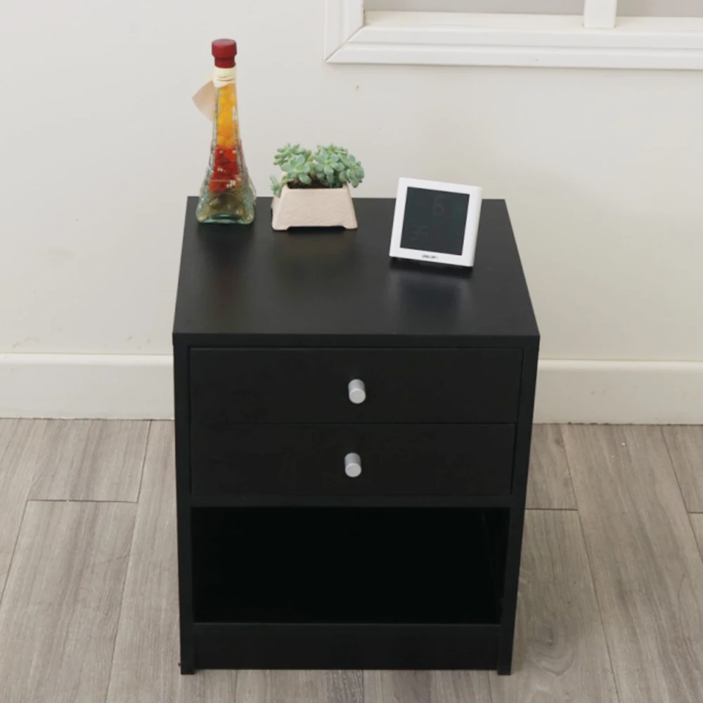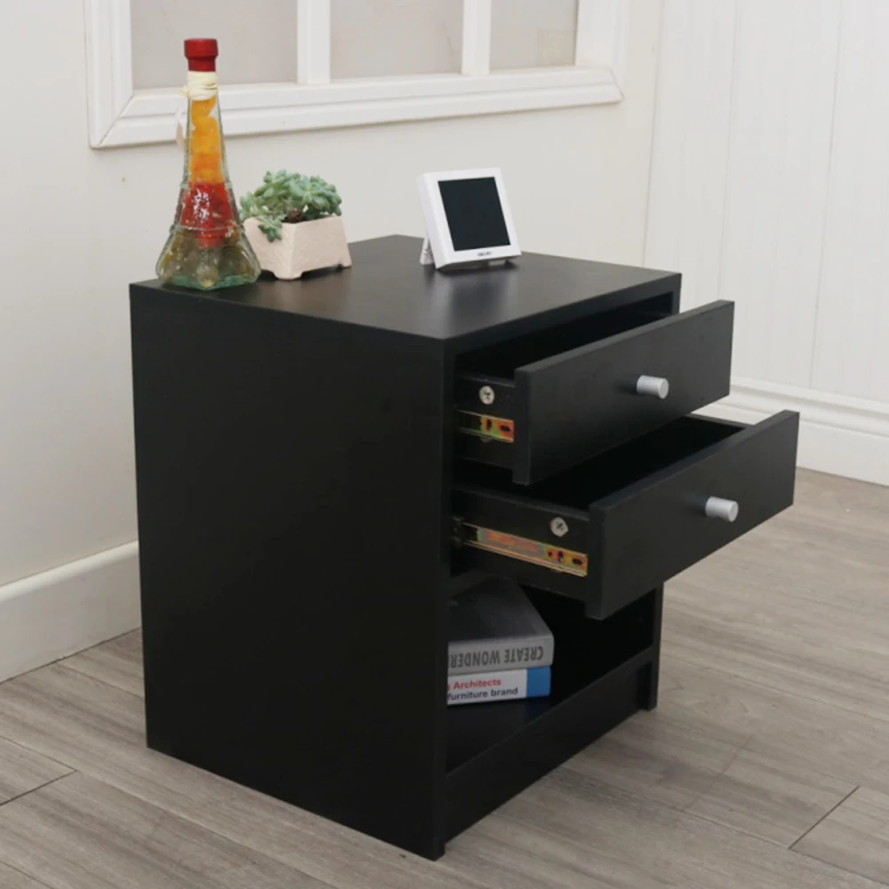 Round Handle Nightstand Bedside Table Cabinet With Two Drawers For Bedroom Storage Desk
