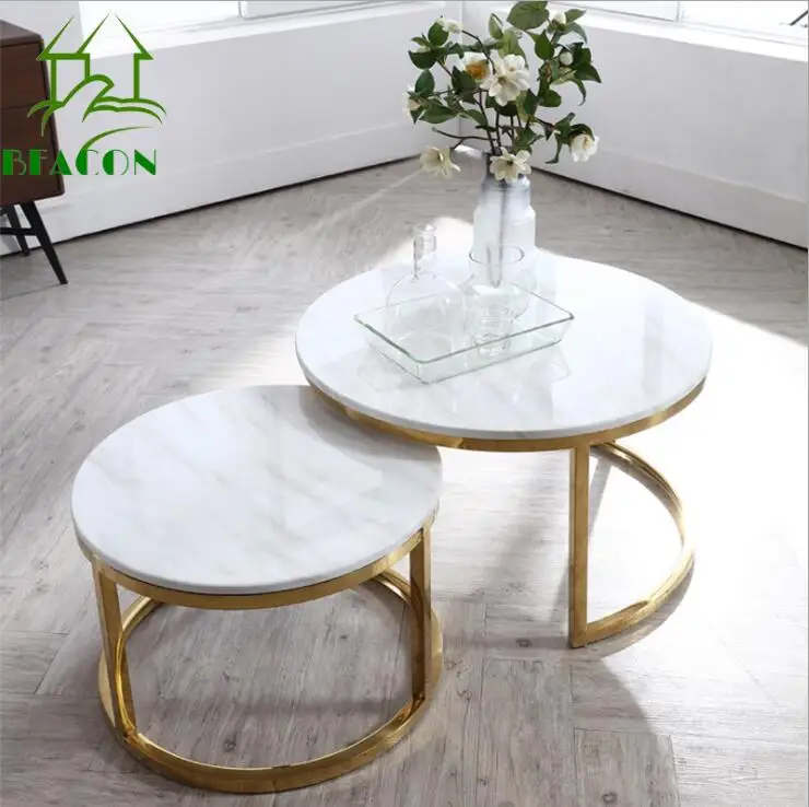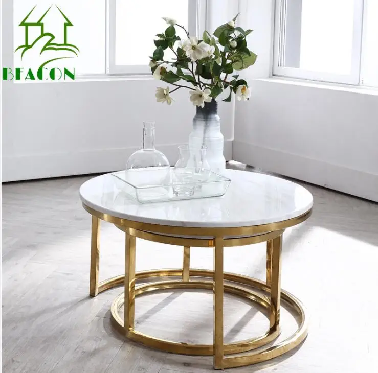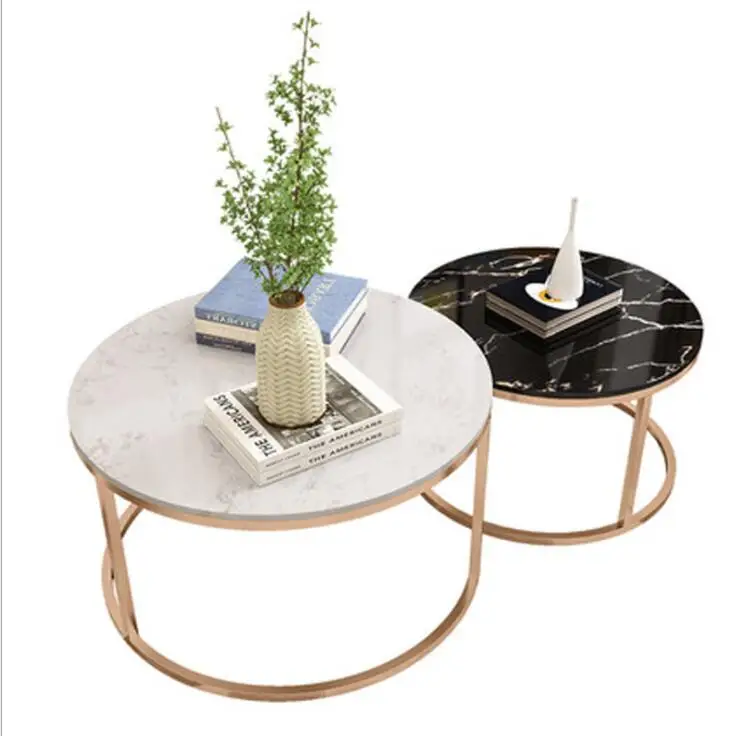 Round Gold Metal Coffee Side Table Marble Stainless Steal Tea Table