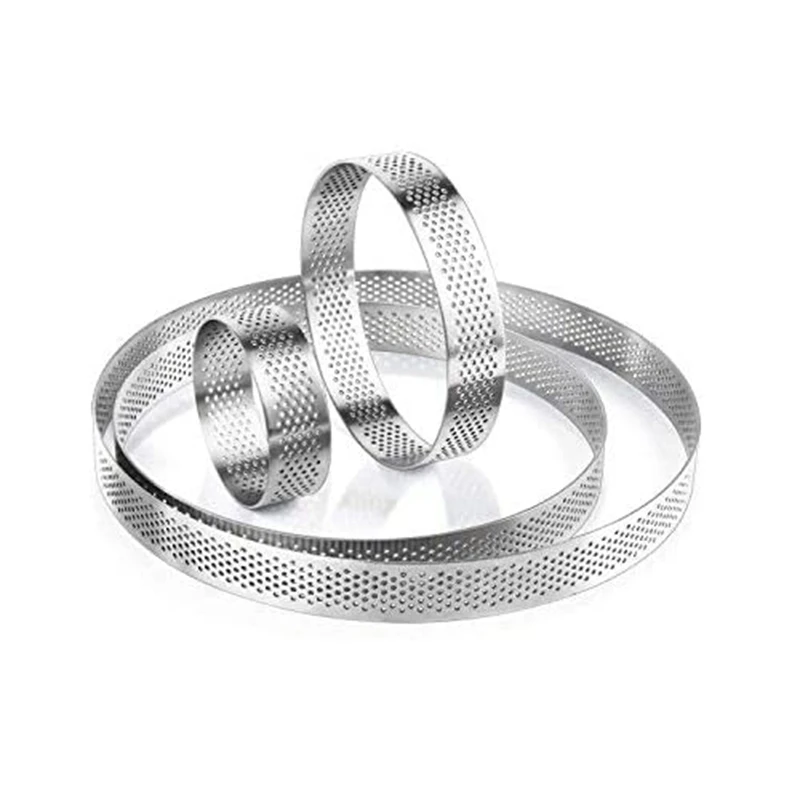 Round Perforated Tart Ring, Stainless Steel, 0.75 Inch High, 2.4 Inch, 4 Inch, 6 Inch, 8 Inch in Diameter, Set Of 4