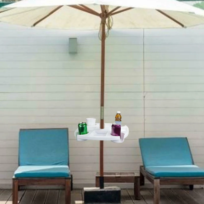 17 Inch Round Plastic Holders Snack Cups Beach Umbrella Table with Cup for Garden Swimming Pool