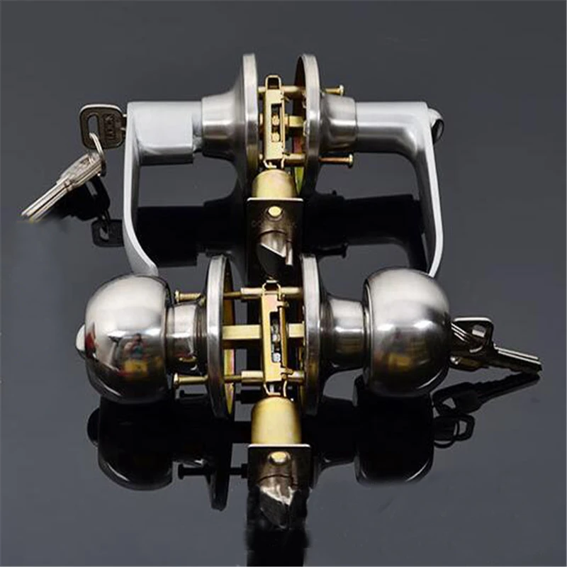 Round Ball Privacy Door Knob Set Bathroom Handle Lock With Key For Home Door Lock Hardware Supplies
