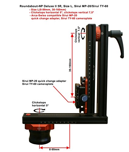 Roundabout-NP Deluxe II 5R misura L (incluso adattatore con piastra a sgancio rapido Sirui MP-20/Sirui TY-60 compatibile con Arca-Swiss) adattatore per punto nodale, testa panoramica