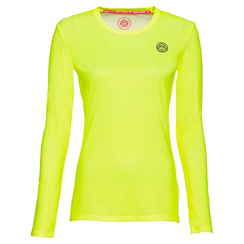 BIDI BADU Roundneck Longsleeve, Pia Tech-Maglia a Maniche Lunghe con Scollo Rotondo Donna, Giallo Fluo, S