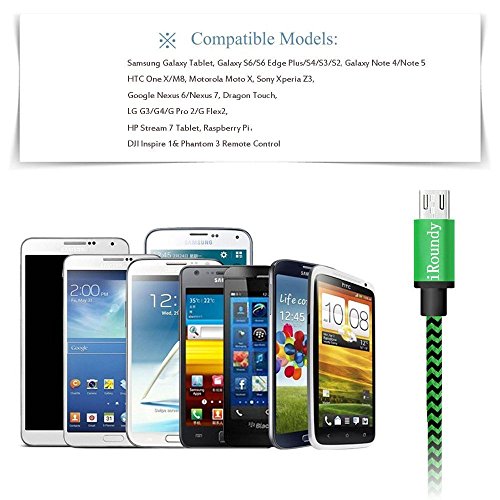 Roundy Android Micro USB Cavo, 5 Pack 3FT/1m Ultra Resistente Nylon Intrecciato Cavo di Ricarica Micro USB per Samsung Galaxy S7 / S7 Edge / S6 / S5 / S4 / S3, Note 5 / 4 / 3,HTC,LG,Sony, Nexus, Blac (3FT/1M)