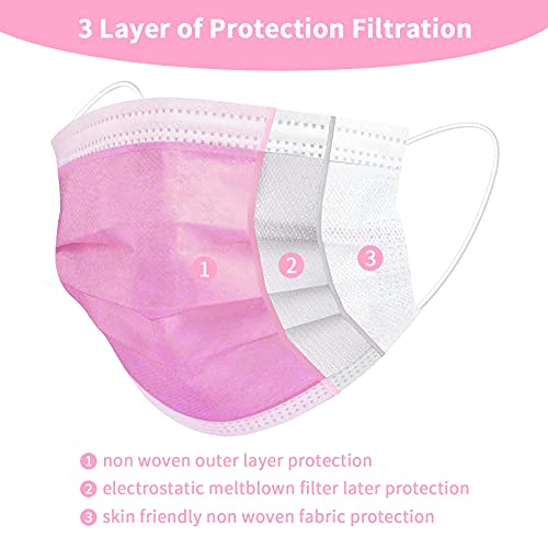 Rousig Mascherine per bambini 50 pezzi, Certificate CE, Maschera monouso bambino a 3 strati, viso protezione maschere made certificata (Rosa)