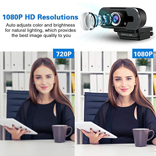 ROVLAK 1080P HD Webcam PC Live Streaming Camera con Microfono Stereo Fotocamera Web Grandangolare 105 ° Web Camera per PC Mac Laptop Desktop Zoom Skype FaceTime Video Chiamate Registrazione
