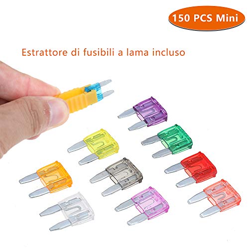 Rovtop 150pcs Mini Fusibili Auto +1Clip (2A 3A 5A 7.5A 10A 15A 20A 25A 30A 35A 40A) Fusibili Lamellari Auto per Automobili