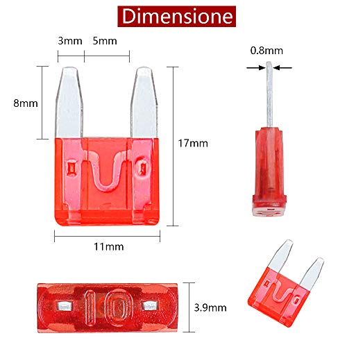 Dimensioni dei fusibili: 17 mm x 11 mm x 8 mm. Con la scatola di plastica trasparente, puoi facilmente riporlo, comodo per riporlo.