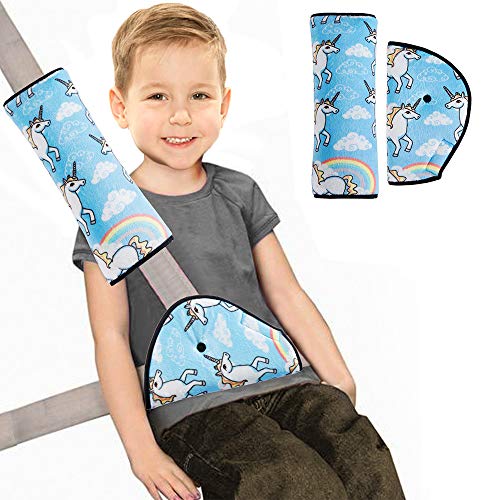 Rovtop 3 in 1 Cuscino Cintura Sicurezza Bambini, Stile Unicorno, Rendere la Cinture di Sicurezza Sono più Adatte ai Bambini, Proteggere le Vertebre Cervicali dei Bambini