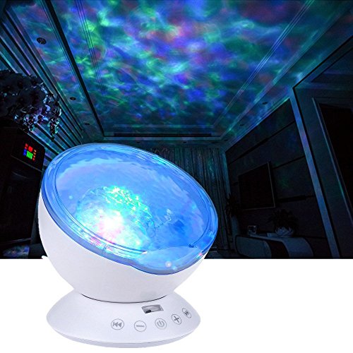 Rovtop Luce Lampada Proiettore Notturna di Onde con Altoparlante, Proiettore Luce di Notte con Telecomando Decorazione Festa Casa
