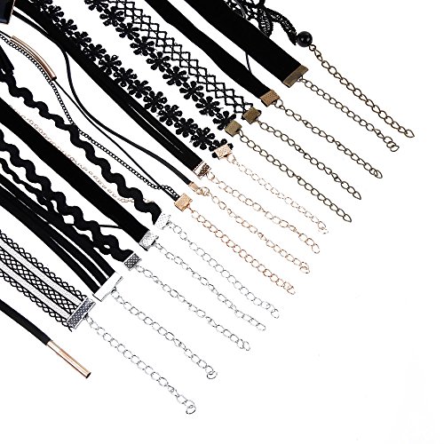 Rovtop, 15 pezzi di collane, set di girocollo in gomma, da donna, collana di velluto con tatuaggio nero