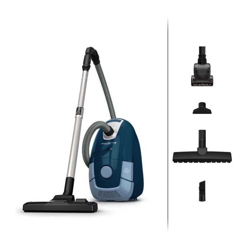 ROWENTA RO3172EA ACCHIVERO DI ACCHIARAMENTO CON BAG, KIT ANIMALI, motore a basso consumo, capacità di 4,5 L, molti accessori, potenza xxl, blu
