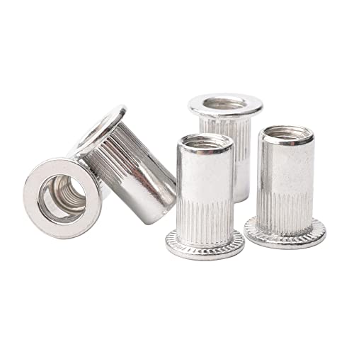 Rowiz 100 pezzi M5 testa piatta in alluminio rivetto dado cieco inserto dado dado zigrinato testa in acciaio assortimento con filettatura interna, argento