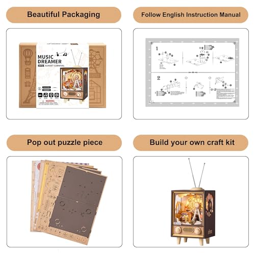 RoWood Puzzle 3D Carillon e Luce Notturna in Legno | Modellismo da Costruire Modellini da Costruire per Adulti | Regali di Natale di Compleanno per Adulti Adolescenti