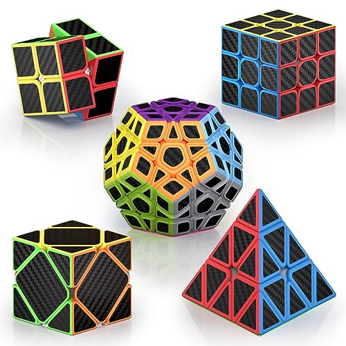 ROXENDA Speed Cube Set, [5 Pezzi] Magic Cube Set of 2x2 3x3 Piramide Dodecahedron Skew, Tornitura Facile & Gioco Regolare - Cubo Magico in Fibra di Carbonio