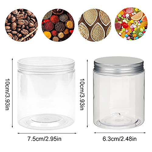 RoxNvm Barattolo di plastica, Barattoli di stoccaggio, Barattoli in plastica trasparente da 2 pezzi per alimenti con coperchi a vite in alluminio per alimenti secchi,zucchero,spezie,snack, senza BPA