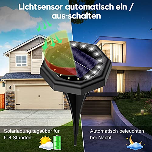 Risparmio energetico: prendete i LED a risparmio energetico, ogni pezzo è dotato di una batteria da 600 mAh, che si ricarica durante il giorno con energia solare e fornisce energia per le 8 lampadine LED integrate di notte. Dopo 8 ore di carica completa, la lampada da giardino può emettere una durata di 8-10 ore.