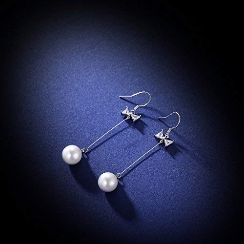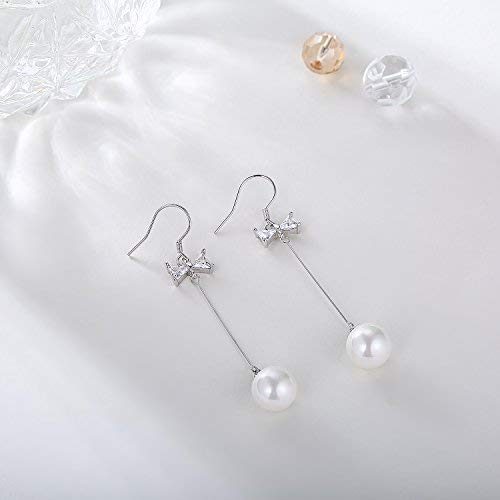 Roxse Orecchini Lunghi Orecchine Perla Donna con Pendente 9mm Perla D'acqua Dolce, con un Confezione Elegante Idea Regalo per Natale, Lunghezza 5.5cm (Bianco)