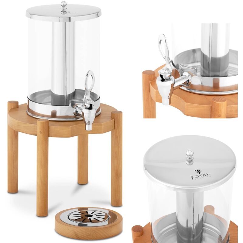 Bevande raffreddate in modo semplice con questo dispenser per bevande con rubinetto di marca Royal Catering ✅ Modello: RCSD-1W1 ✅ Articolo: 10012055 ⬇️ Caratteristiche principali Spazioso: distributore con una grande capacità di 7 litri. Puro: inserto per il raffreddamento impermeabile che impedisce che le bevande siano annacquate. Chiaro: contenitori in plastica trasparente che mostrano il contenuto. Semplice: erogatore facilmente accessibile per porzioni precise. Flessibile: per bicchieri e contenitori con un'altezza massima di 190 mm. ⬇️ Dettagli tecnici Altezza del contenitore [mm] 260 Diametro del contenitore [mm] 200 Materiale Acciaio inox, Plastica, Legno Colore Argento, Legno Manuale No Capacita 7 l Numero di contenitori 1 Pc Altezza max. del bicchere 190 mm ⬇️ Descrizione del prodotto Questo dispenser di bevande RCSD-1W1 di Royal Catering, il tuo professionista per la gastronomia, è indispensabile in tutti quei luoghi dove vengono offerti acqua, latte, tè freddo o