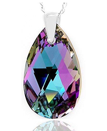 Royal Crystals, collana in argento Sterling, con ciondolo a goccia di cristallo Swarovski, che emana riflessi di luce rosa e blu, lunghezza: 45,7 cm