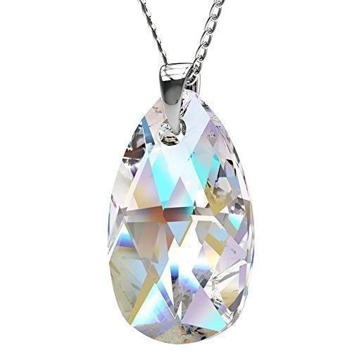 Royal Crystals - Collana da donna in argento Sterling con pendente a goccia realizzato in cristalli Swarovski della gamma "Aurora Borealis", colore: azzurro