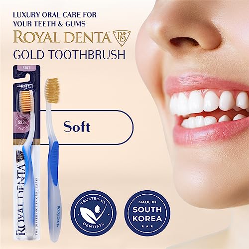 Royal Denta Spazzolino da denti con setole morbide dorate, spazzola morbida per denti sensibili, doppia lunghezza, setole morbide per la pulizia interdentale, particelle d'oro per prevenire i batteri,