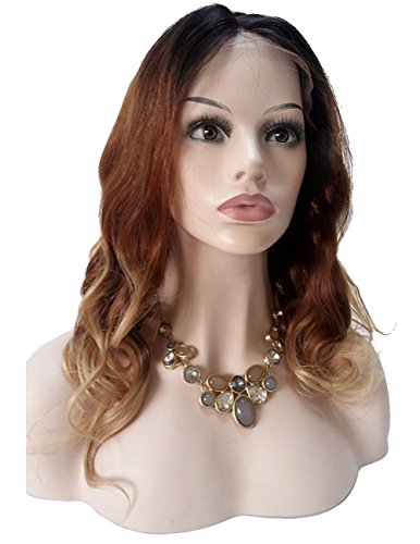 Royal-first, parrucca da donna senza colla con capelli brasiliani umani e attaccatura a striscia, capelli ondulati, colorazione con shatush a tre toni, T#1b/4/27