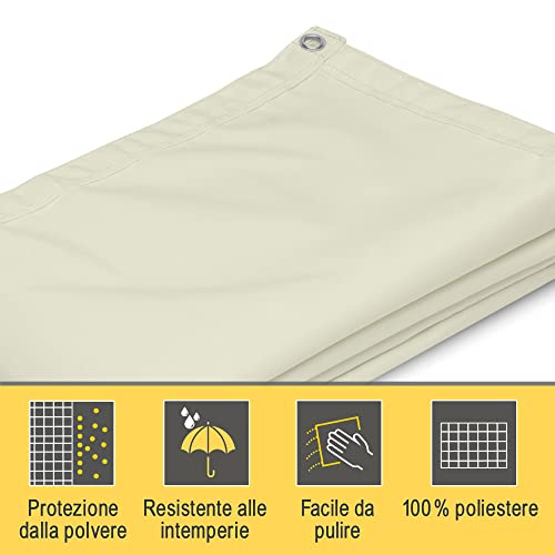 : Con l'ausilio della comoda corda in dotazione è facile da applicare alle ringhiere di balconi o giardini - il telo dispone di pratiche asole di alluminio