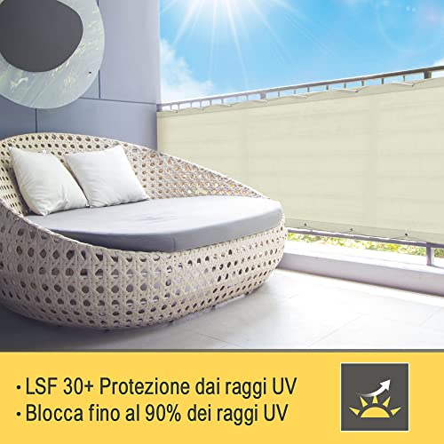 Sol Royal Frangivista e Telo Frangivento per Balconi 90x300 cm in 160g/m PES - Frangivista Balcone Impermeabile & Protezione UV - Schermi Privacy con Occhielli Crema - SolVision PB2