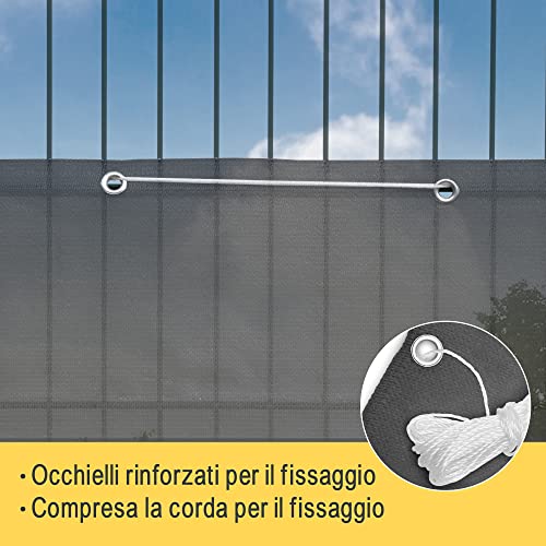 : Grazie alla pratica corda in dotazione è facile da applicare alle ringhiere di balconi o giardini - il telo dispone inoltre di pratiche asole di alluminio