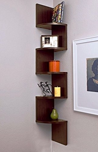 Royal Handicrafts DecorNation Zigzag Corner Wall Mount Shelf Unit (Walnut Finish, Brown)
