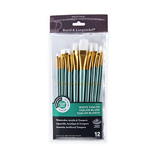 Royal and Langnickel RSET-9339 - Set di pennelli medi con setole in Taklon, confezione da 12, colore: Bianco