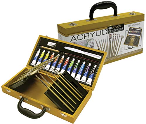 Royal & Langnickel - Valigetta di legno contenente 12 pennelli e colori ad acrilico in tubetto