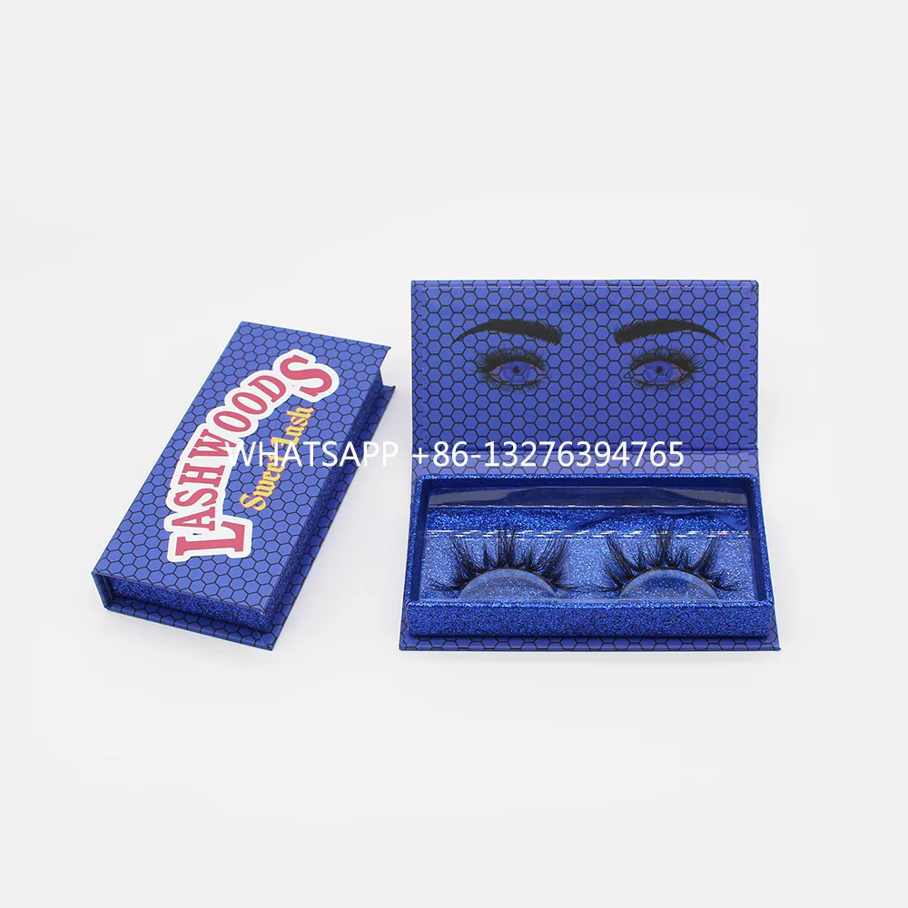 Royal Blue Lashwoods Lashes Boxes With Tray Custom Lashbox Packaging With Logo LASHWOOD Mink Eyelashes Cases 20pcs Wholesale