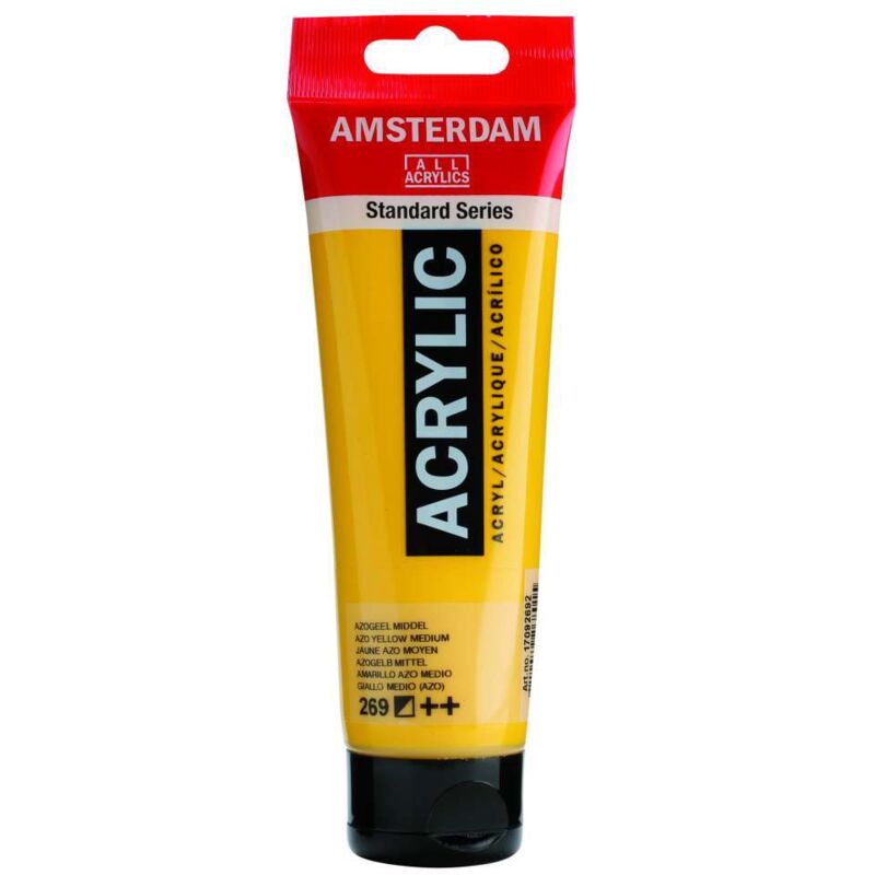 ROYAL TALENS - AMSTERDAM SPECIALTIES - COLORE ACRILICO 269 GIALLO AZO MEDIO 120ML Colore acrilica Metal linea Amsterdam Colore acrilica Standar Series Amsterdam Amsterdam serie Standar e Metal offrono tutto ciò di cui ha bisogno un pittore. Vernice acrilica di ottima qualità e una vasta gamma di colore. Caratteristiche: Un altissimo livello di resistenza alla luce, grazie all'utilizzo di pigmenti puri che non sbiadiscono. Anche dopo diversi decenni le opere d'arte conservano il loro colore originale. Un film di vernice eccezionalmente durevole (il legante è costutuito da resina acrilica al 100%) per un risultato eterno. Resistente agli alcali e di conseguenza adatto a pitture murali. Facile da usare: Il colore può essere facilmente diluibile in acqua. Breve tempo di asciugatura: uno strato sottile di vernice asciuga in mezz'ora. Il particolare metodo di preparazione rende la vernice praticamente inodore.