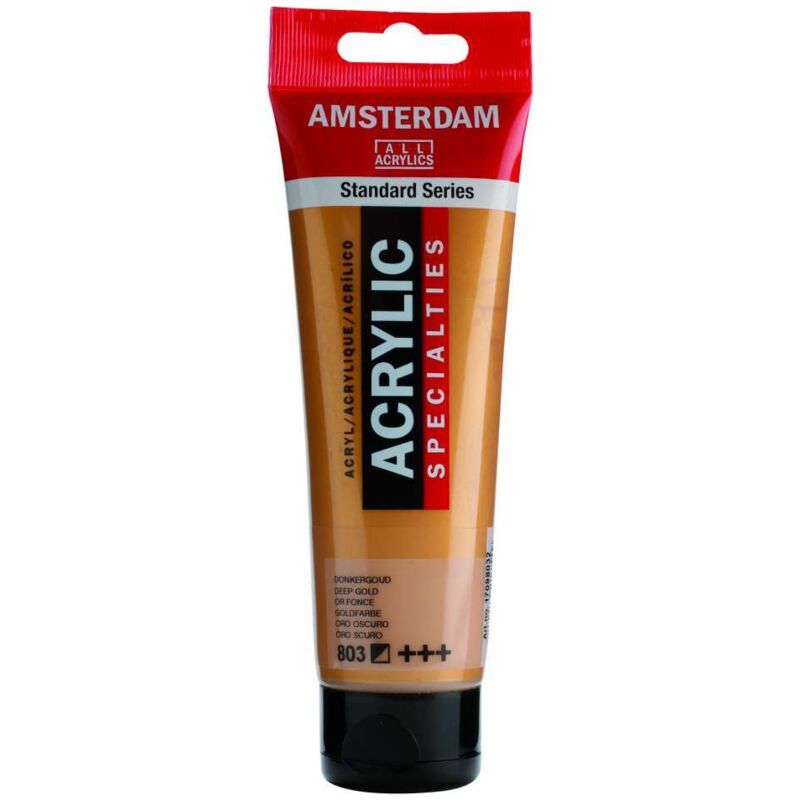ROYAL TALENS - AMSTERDAM SPECIALTIES - COLORE ACRILICO 803 ORO SCURO 120ML Colore acrilica Metal linea Amsterdam Colore acrilica Standar Series Amsterdam Amsterdam serie Standar e Metal offrono tutto ciò di cui ha bisogno un pittore. Vernice acrilica di ottima qualità e una vasta gamma di colore. Caratteristiche: Un altissimo livello di resistenza alla luce, grazie all'utilizzo di pigmenti puri che non sbiadiscono. Anche dopo diversi decenni le opere d'arte conservano il loro colore originale. Un film di vernice eccezionalmente durevole (il legante è costutuito da resina acrilica al 100%) per un risultato eterno. Resistente agli alcali e di conseguenza adatto a pitture murali. Facile da usare: Il colore può essere facilmente diluibile in acqua. Breve tempo di asciugatura: uno strato sottile di vernice asciuga in mezz'ora. Il particolare metodo di preparazione rende la vernice praticamente inodore.