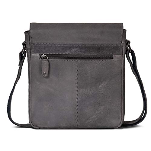 ROYALZ 'Denver' Borsa uomo pelle piccola vintage Tracolla Borsello Vero Cuoio Messenger per Tablet da 10,1 Pollici Viaggio, Colore:Navy Grigio