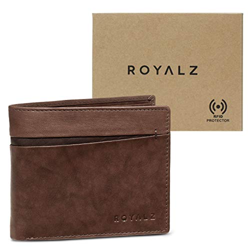ROYALZ Portamonete Uomo Vintage RFID blocker noble classico in vera pelle cuoio liscio regalo, Colore:Santiago Marrone