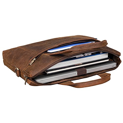 ROYALZ 'Seattle' Grande borsa a tracolla in pelle da uomo valigetta vintage per laptop da 15.6' borsa messenger business, Colore:Nevada Marrone