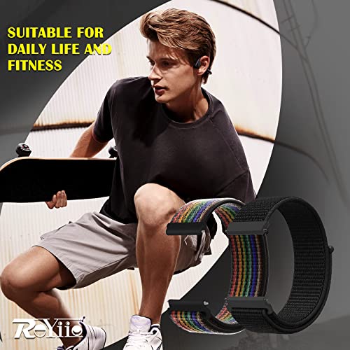 RoYiio 2 Pezzi Cinturino Compatibile con Anse Larghe 20mm / 22mm, Impermeabile, Comodo e Traspirante, con Sgancio Rapido, Nylon Cinturini per Uomo Donna - Nero & Arcobaleno Nero