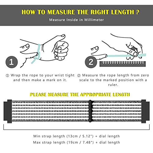 ⌚ [Dimensioni e Installazione] Il cinturino adotta un potente adesivo magico, facile da regolare la lunghezza del cinturino, mantiene l'orologio saldamente al polso. Con le barre a molla a sgancio rapido su entrambi i lati del cinturino, puoi cambiare facilmente il cinturino senza attrezzi. Lunghezza minima del cinturino (13cm / 5.12") + lunghezza del quadrante, lunghezza massima del cinturino (19cm / 7.48") + lunghezza del quadrante.