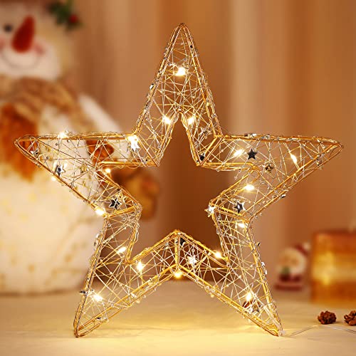 Roylvan Luci LED a Batteria a Forma di Stella Scavata da Tavola, Lampada da Scrivania in Ferro, Notturna a 20 LED Luci da Interno da Tavola, Addobbi di Natale per Camera da Letto Soggiorno - Oro