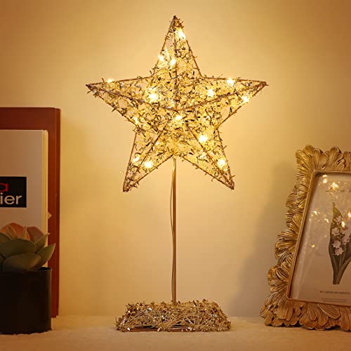 Roylvan Decorazione da Desktop Luce Notturna a Stella con LED, 38 cm Lampada da Scrivania in Ferro Addobbi di Natale per la Casa Baby Room Comodino Tavolo da Pranzo Natale - Oro