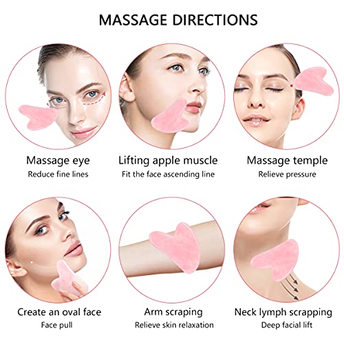 Roysmart Gua Sha Strumento di Massaggio, Jade Gua Sha Board Pietra di Giada Naturale, Per Viso, Collo e Corpo, Viso Donna Skincare Viso Accessori Viso Antirughe Rosa
