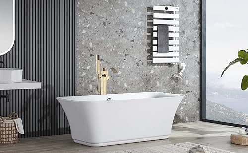 Rozin Oro Cascata Becco Freestanding Rubinetto Vasca Da Bagno Rubinetto con 59" Doccetta Bagno Rubinetto Da Bagno Rubinetto